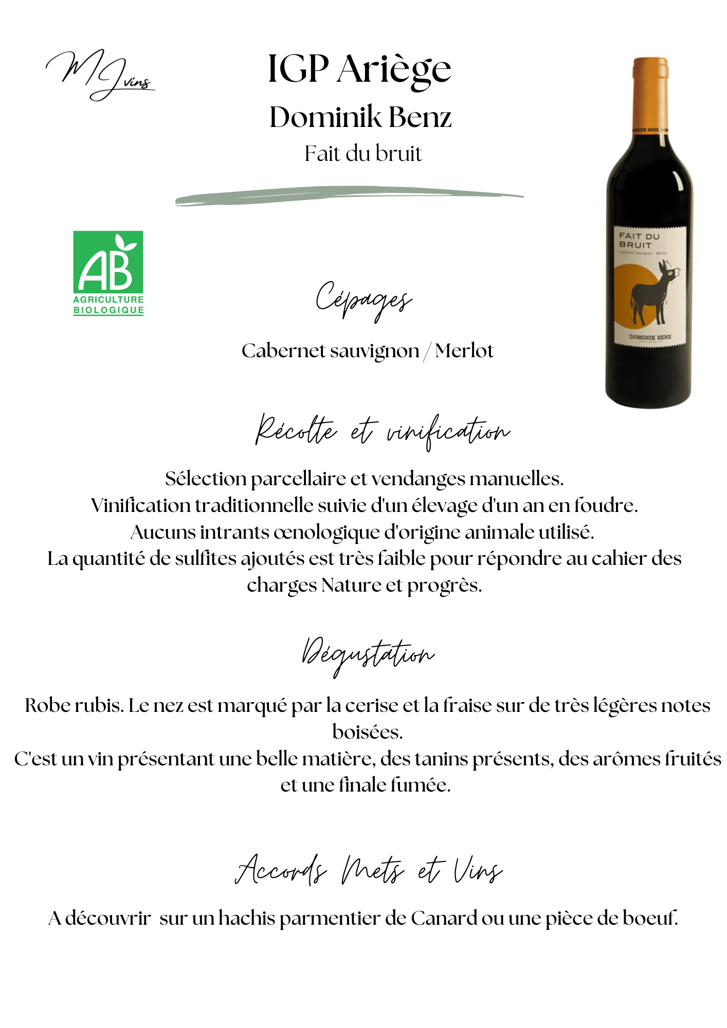 Dominik BenzIGP AriègeBouteille de 75 cl / 13.5° |
