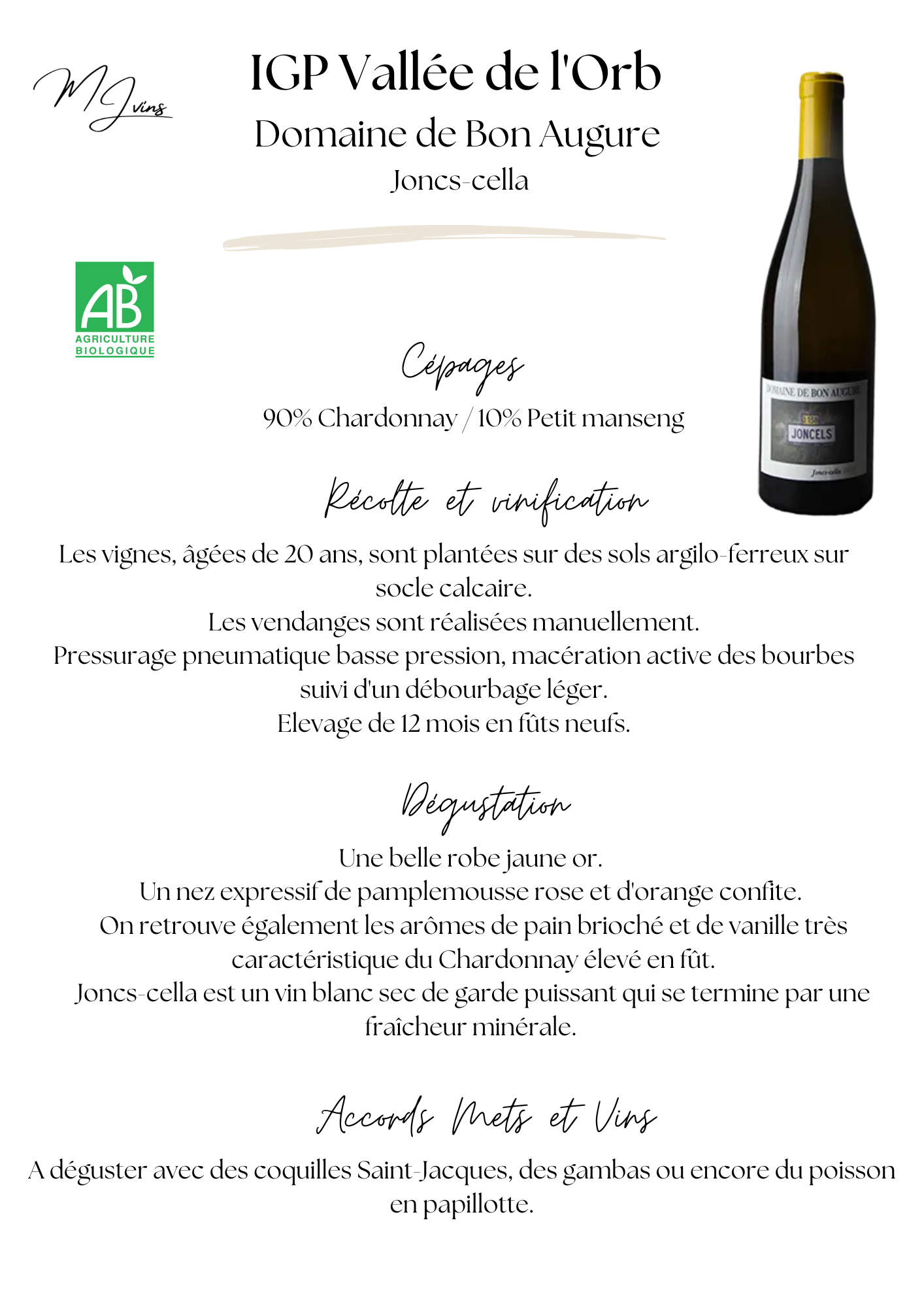 Domaine de bon augureIGP Vallée de l'OrbBouteille de 75 cl / 13° |