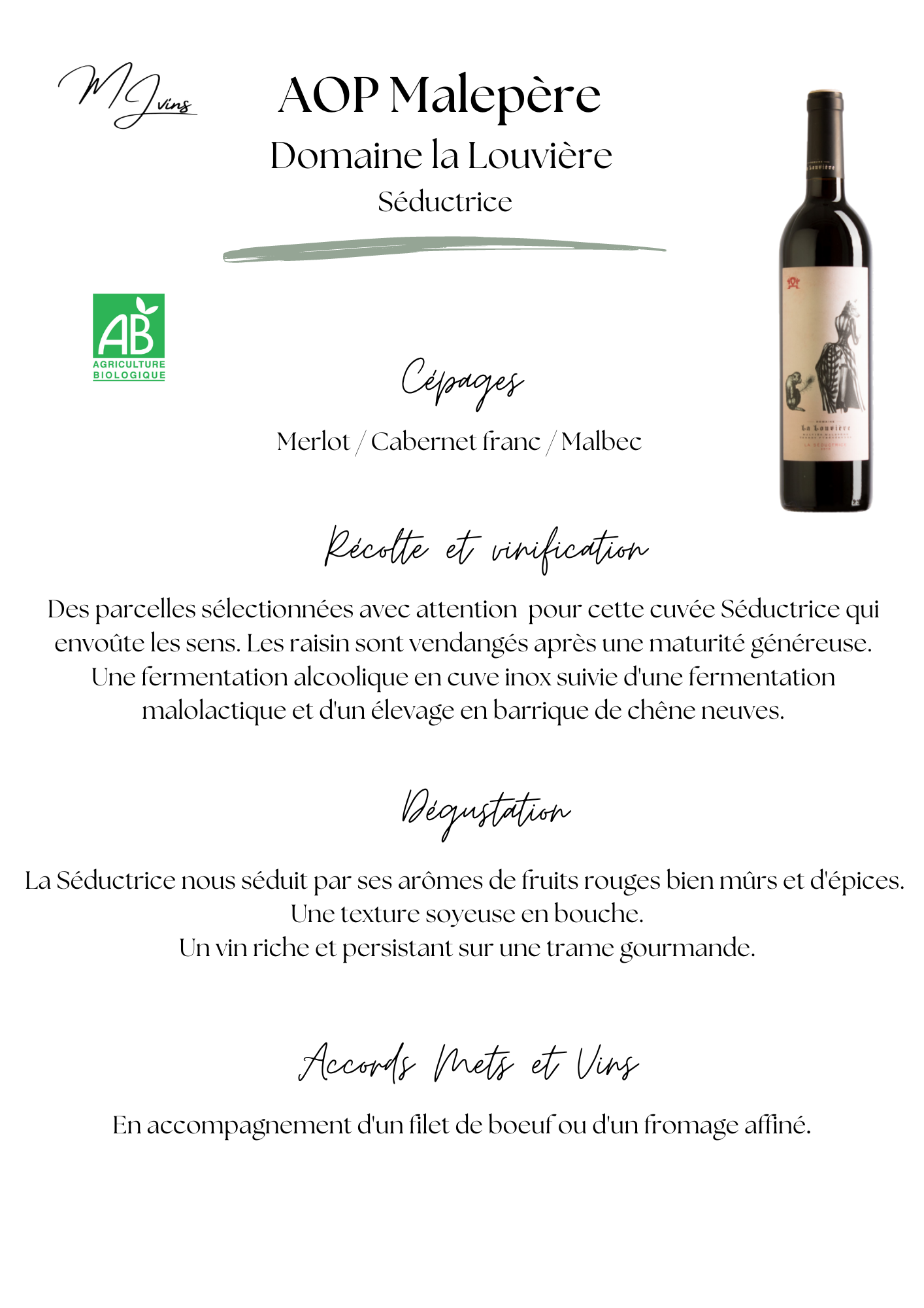 Domaine La LouvièreAOP MalepèreBouteille de 75 cl / 14° |