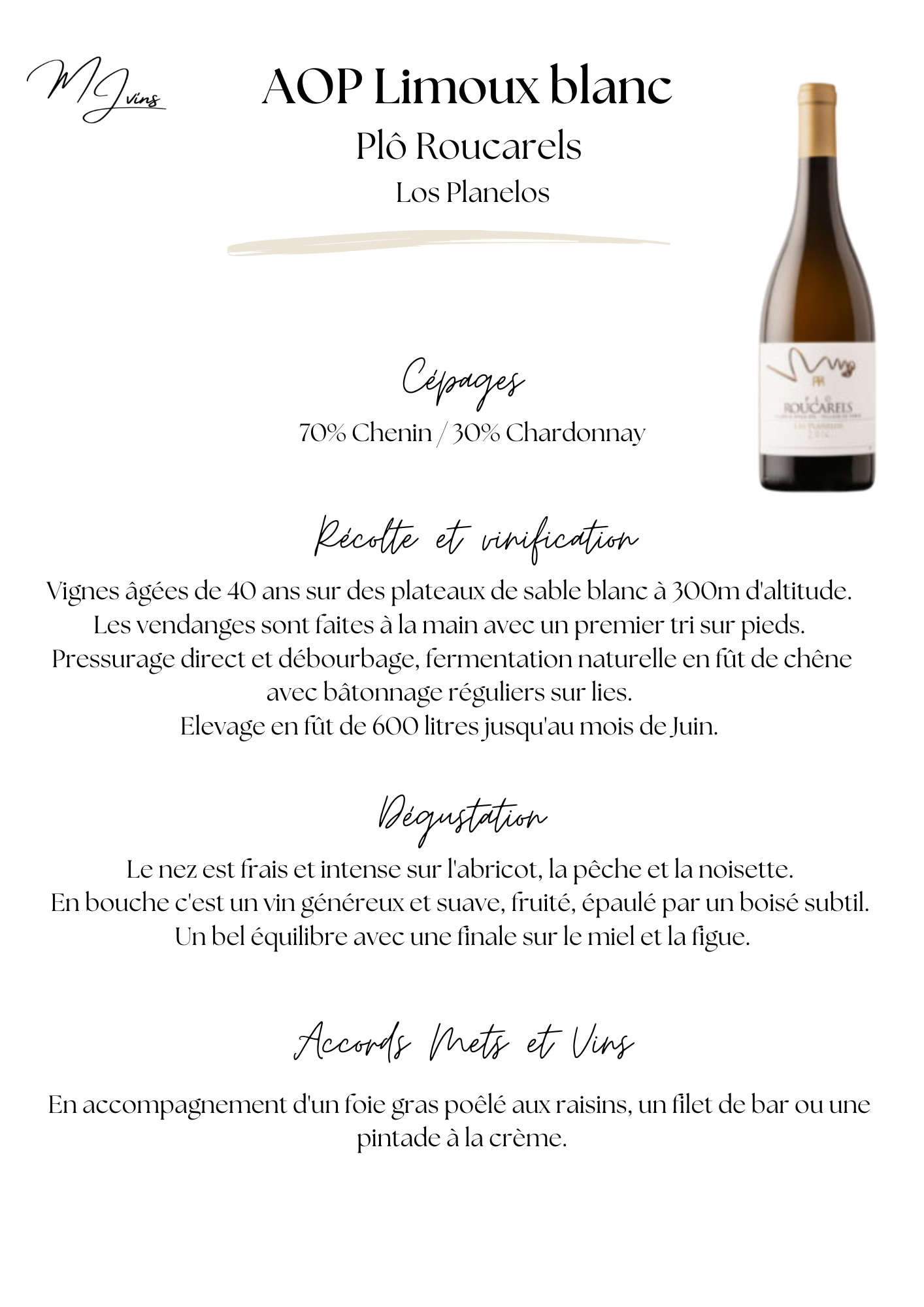 Plô RoucarelsAOP Limoux blancBouteille de 75 cl / 13.5° |