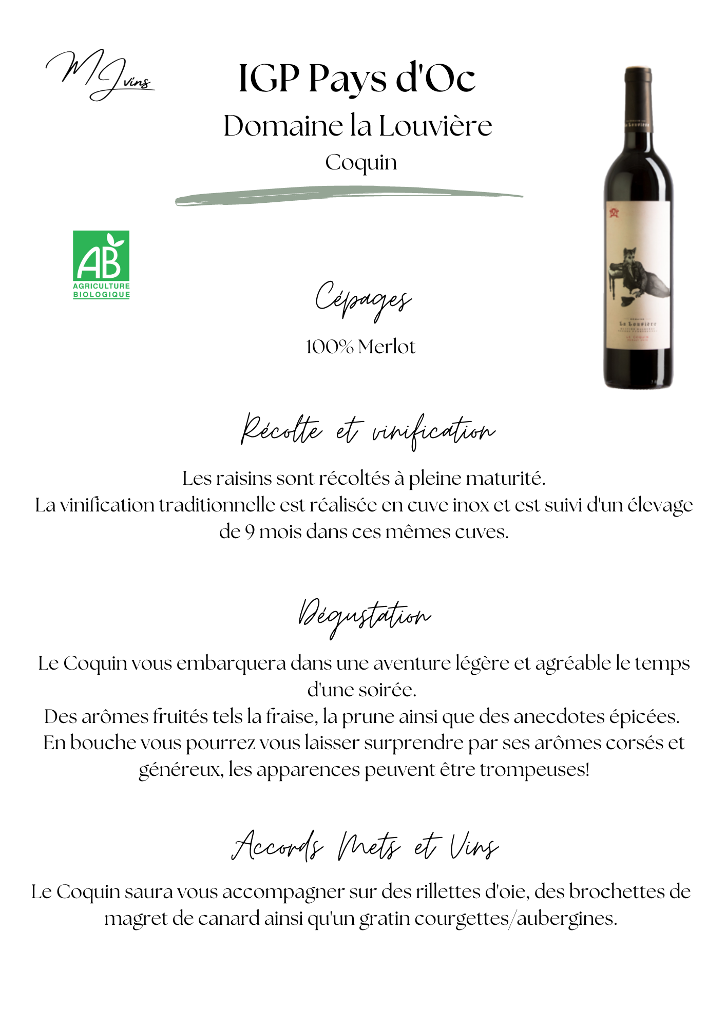 Domaine La LouvièreIGP Pays d'OcBouteille de 75 cl / 13.5° |