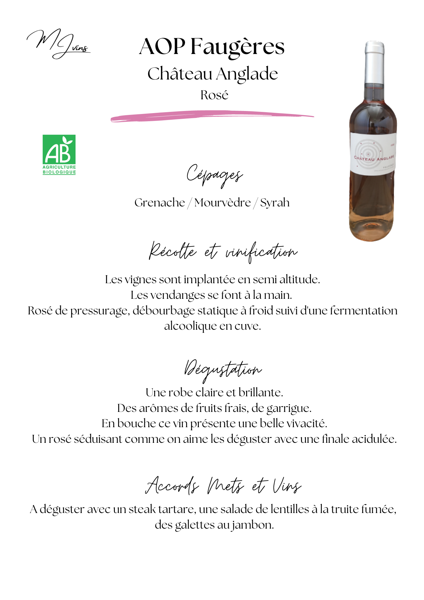 Château AngladeAOP FaugèresBouteille de 75 cl / 12.5° |