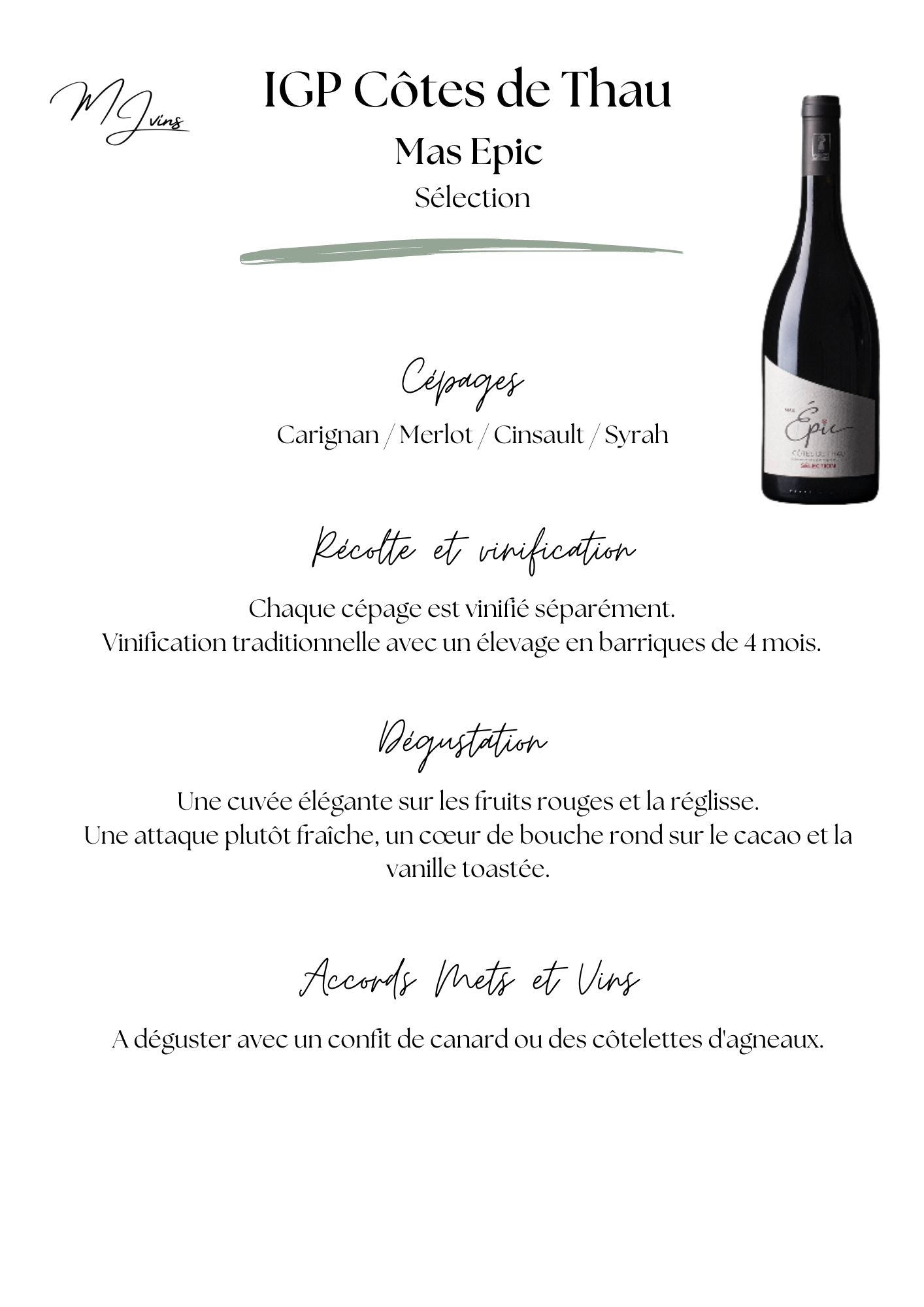 Mas EpicIGP Côtes de ThauBouteille de 75 cl / 13.5° |